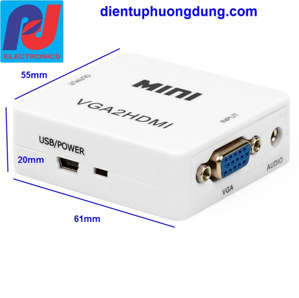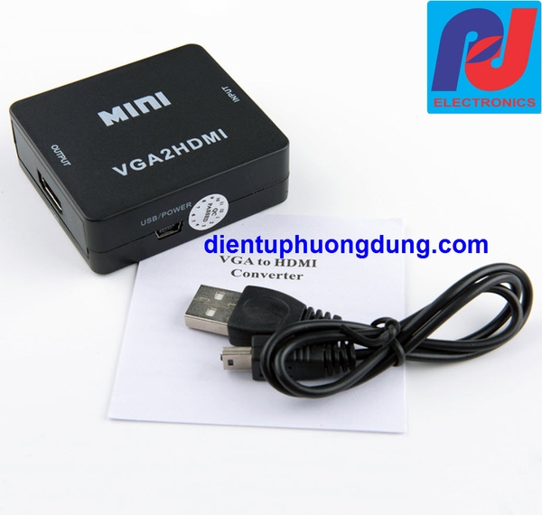 Sản phẩm bao gồm: Bộ chuyển đổi VGA to HDMI và dây nguồn cắm USB.