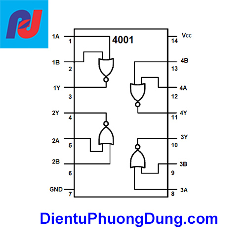 IC CD4001B 14 chân, Quad 2-Input NOR Buffered B Series Gate.
