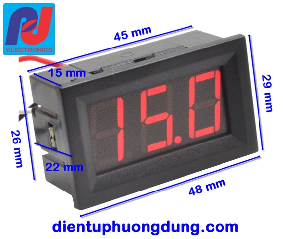 - Hiên thị trên: Điện áp 99.9V - 3 LED 0.28", màu đỏ ; Dòng điện 9.99A - 3 LED 0.28", màu đỏ