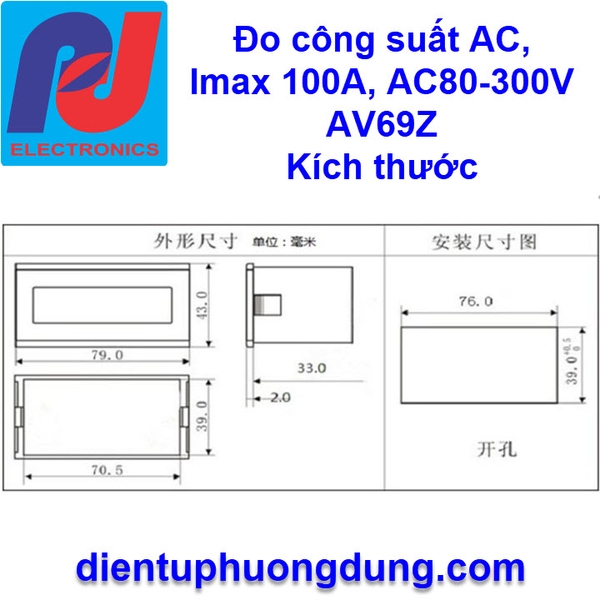 Đồng hồ đo dòng áp công suất năng lượng AC đa năng 100A, mã AV69Z Có điện áp vào dải rộng AC80-300V, được sử dụng để đo và theo dõi gần như hoàn toàn các thông số về điện năng AC của mạch điện như điện áp hoạt động, dòng tiêu thụ, công suất và năng lượng tiêu thụ.