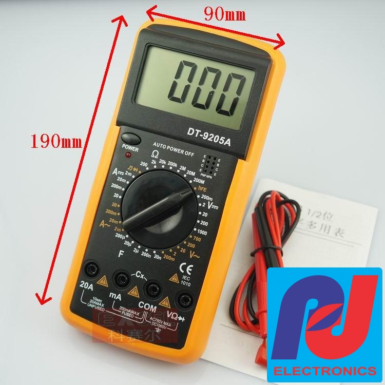 Đồng hồ số DT9205A, Đo điện áp, dòng điện, trở, thông mạch,diode,điện dung,