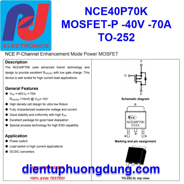 NCE40P70K MOSFET-P Channel 40V 70A TO252 Datasheet