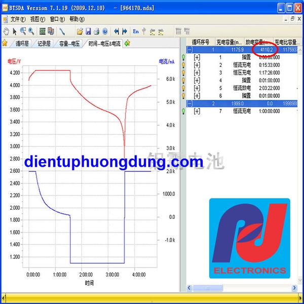 Biểu đồ dòng xả của PIN Lithium 3.7V 4000mAh 964170