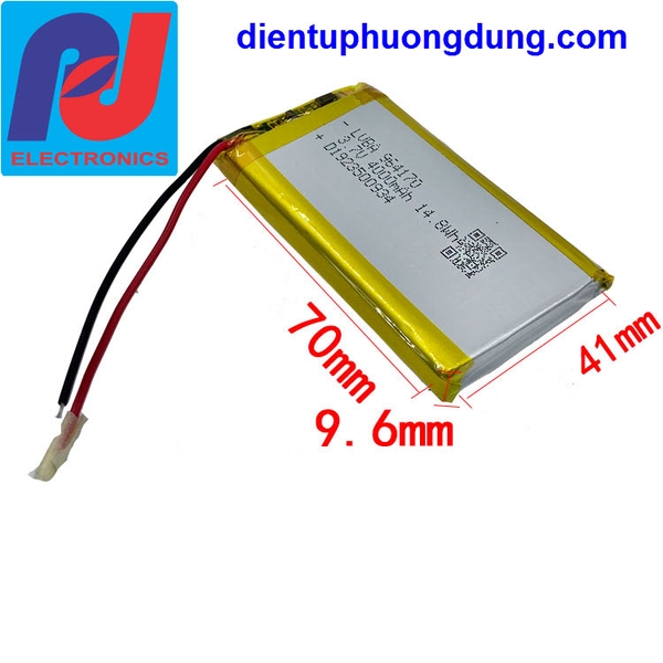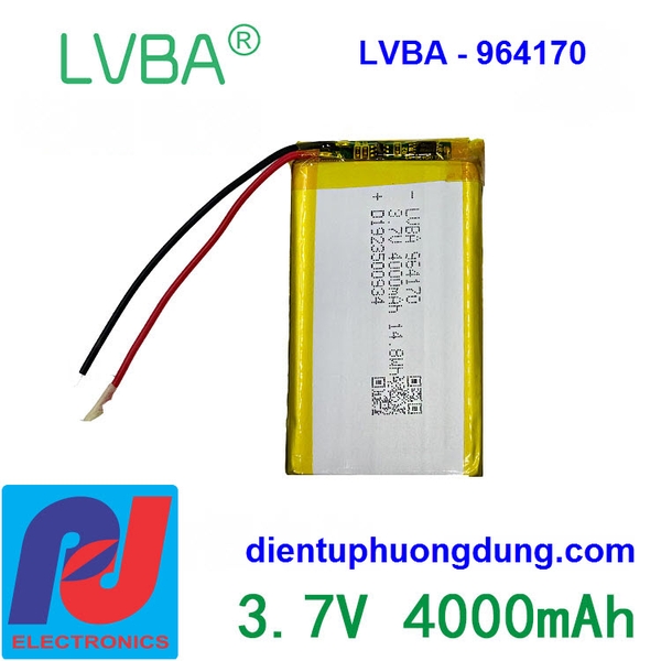 Pin Lithium LVBA 3.7V 4000mA 964170 9.6x41x70mm, Đầu ra 2 dây, có thể ghép nhiều pin lại với nhau.