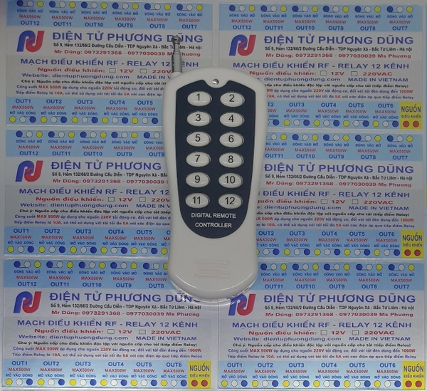 - Tay điều khiển 12 kênh + Bo mạch nhận 12 kênh - nguồn cấp 12VDC, 24VDC - có hoặc không vỏ