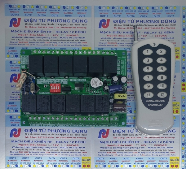 - Tay điều khiển 12 kênh + Bo mạch nhận 12 kênh - nguồn cấp 220VAC - không vỏ