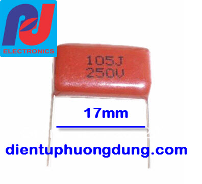 Tụ CBB 105J 250V 17mm, CBB22 - khoảng cách chân 17mm, đường kính chân 1.0mm